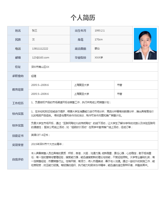 简历模板下载